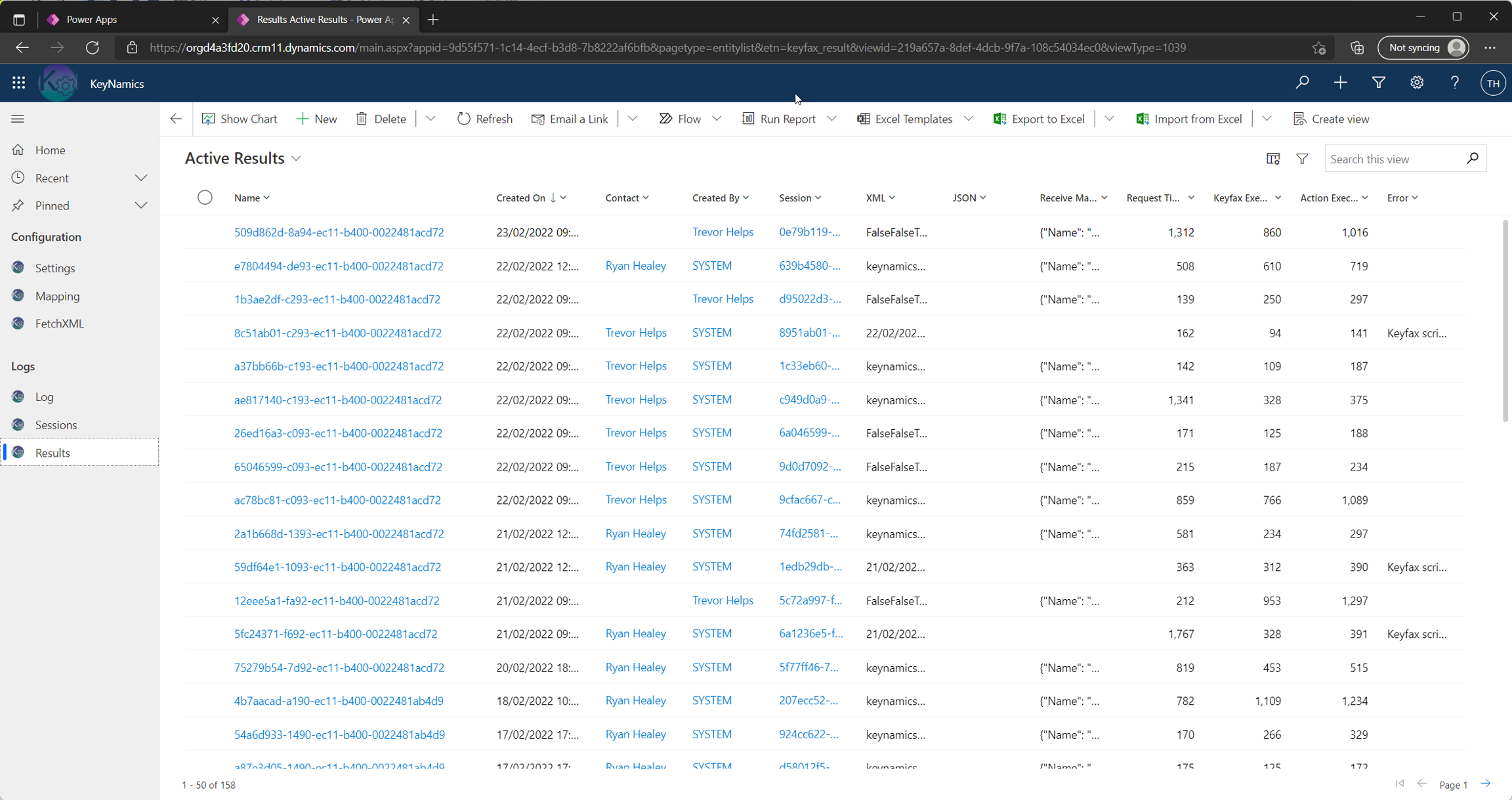keyfax_result)When KeyNamics completes results for the Keyfax script are always added to the keyfax_result entity within Dynamics. You can review all created KeyNamics results via the "Results" link available within the KeyNamics model driven app as shown below...