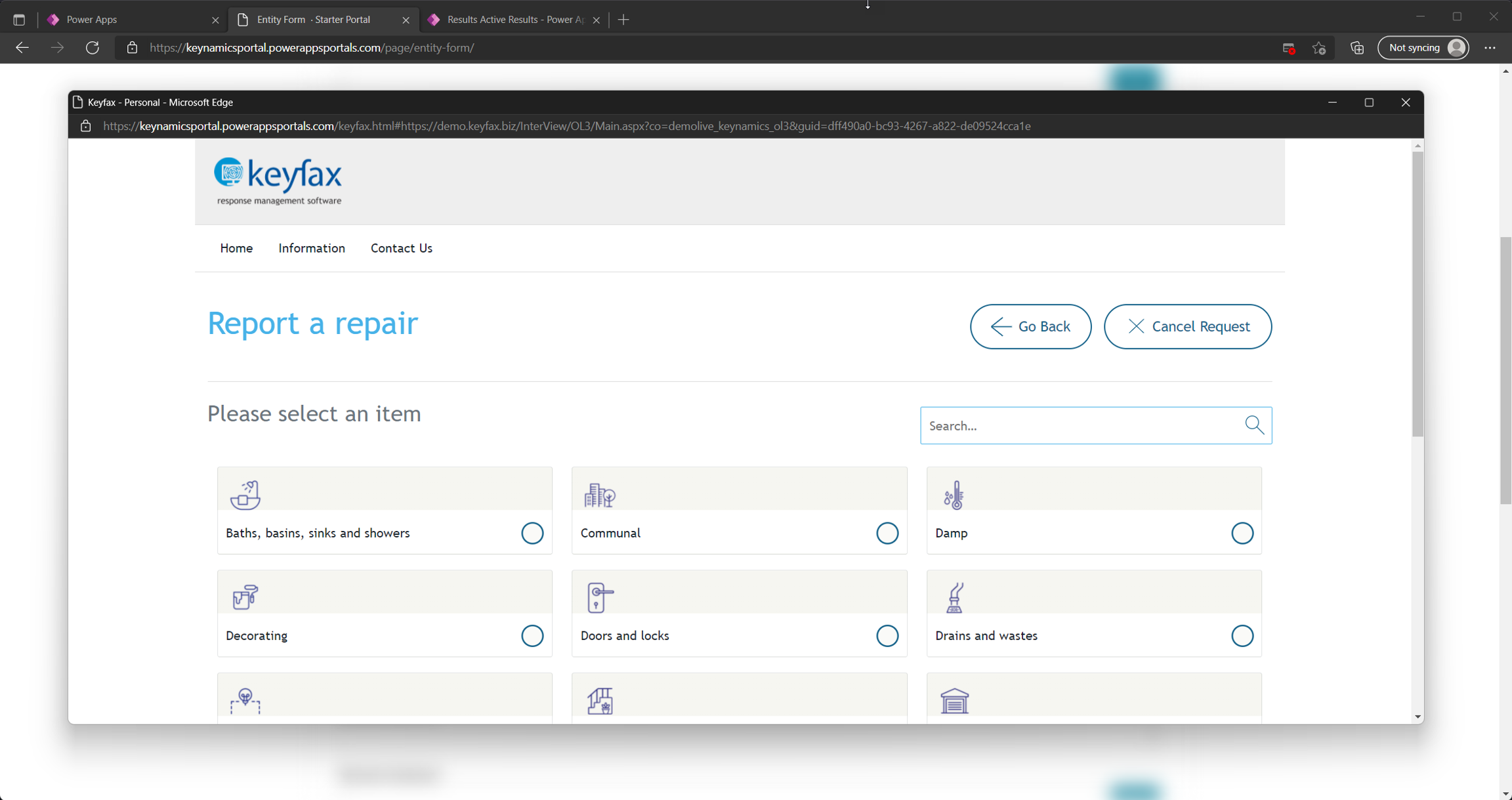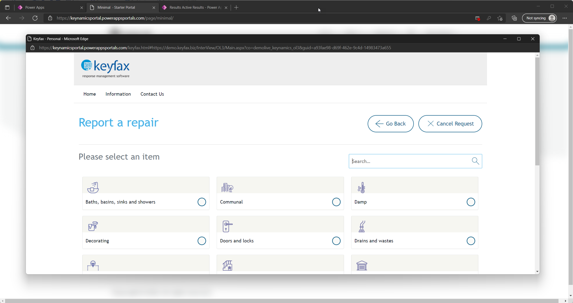 Once you've navigated to your Power Apps portal KeyNamics will be available on one or more pages within your portal.