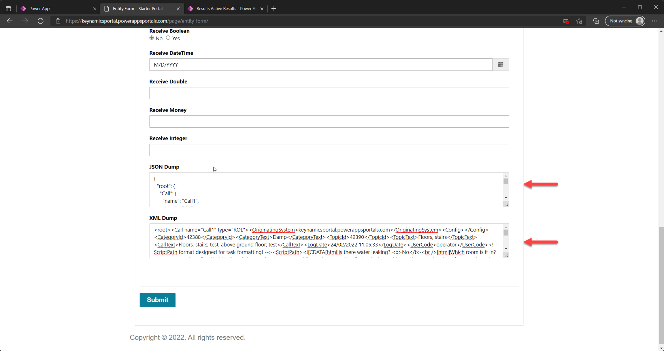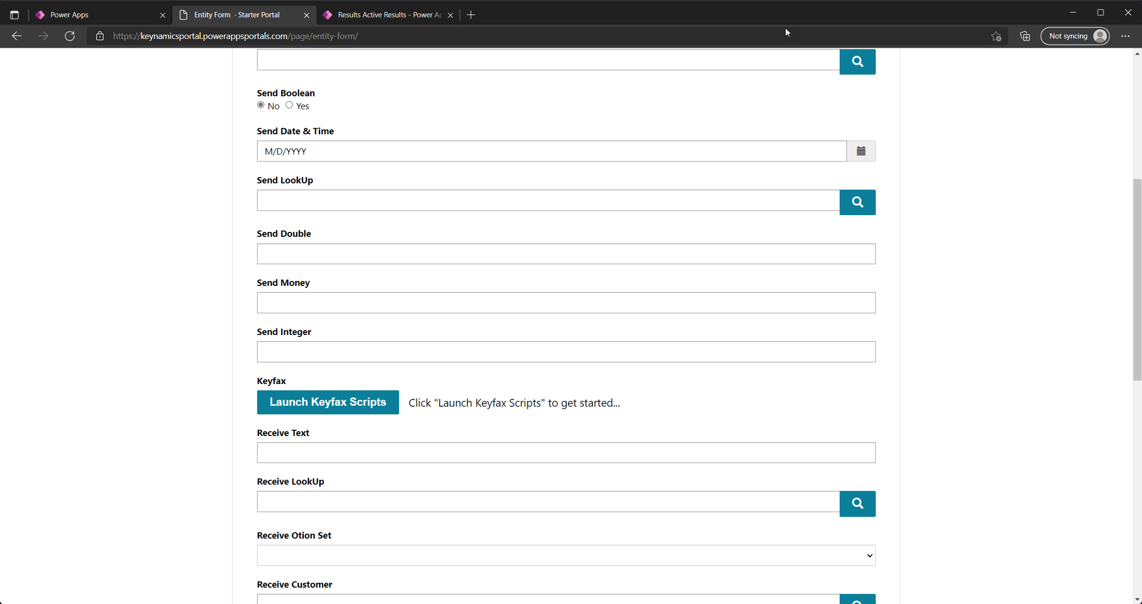 GetResultaction completes and results have been successfully added to thekeyfax_resultentity within Dynamics the clients browser then makes an additional GET request to/_api/keyfax_resultsto obtain the "Receive from Keyfax" mappings necessary to update fields if KeyNamics is embedded within a Basic or Advanced portal entity form. If KeyNamics is not embedded within an entity form within your portal you will likely need to use a Power Automate Flow to perform custom processing against the results added to thekeyfax_resultentity within Dataverse.