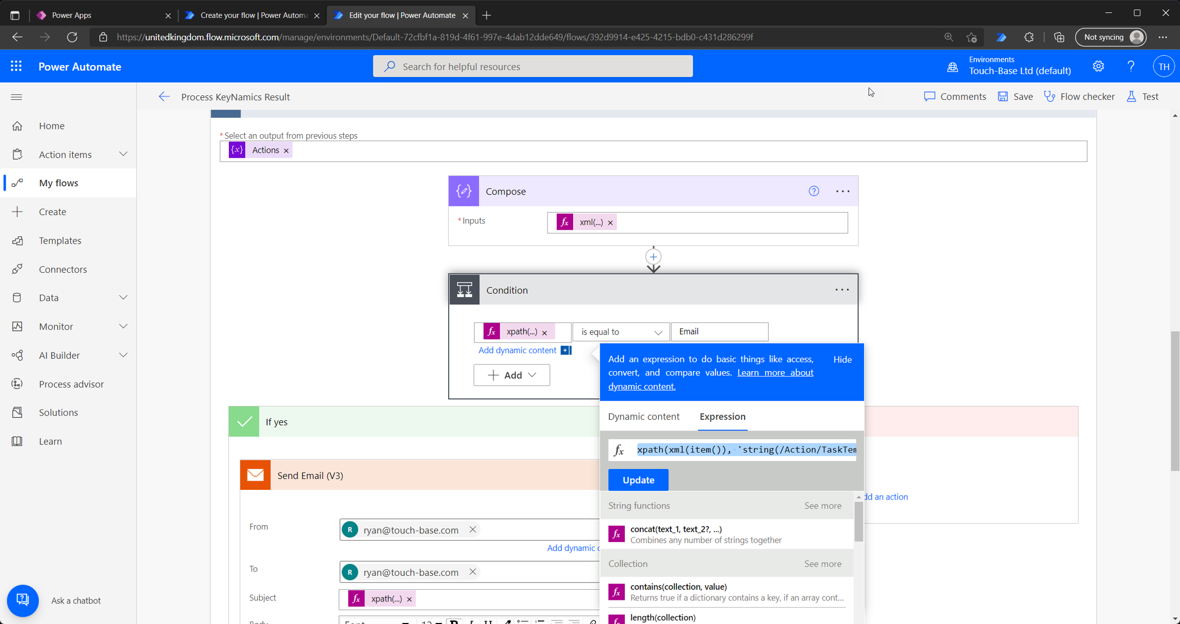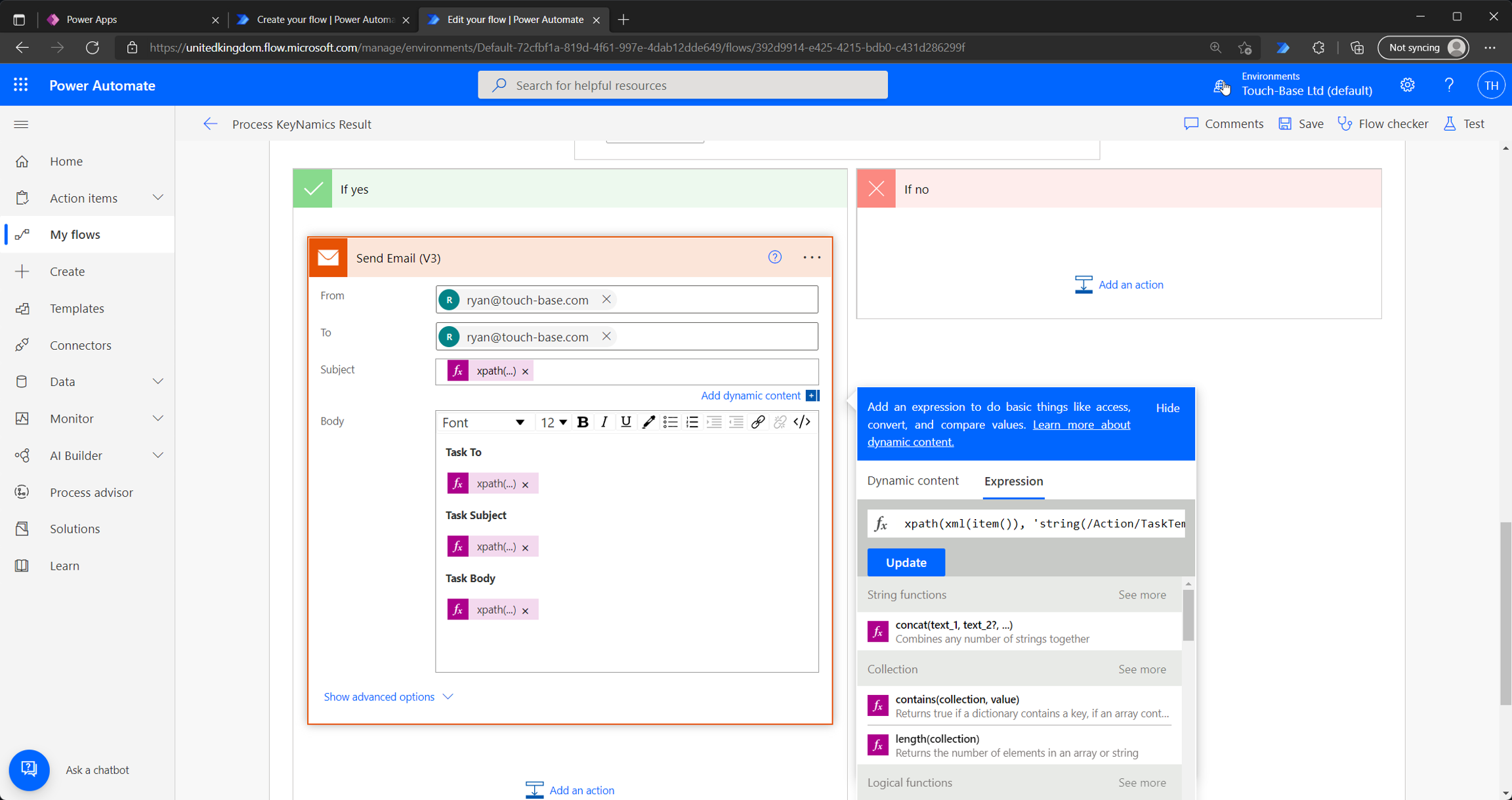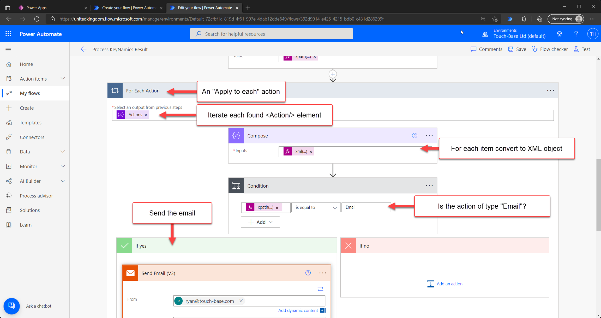 It's important to remember that Keyfax will send configured emails and task emails don't need to be sent via a Power Automate Flow. We've used this example to demonstrate more advanced ways developers can interact with the XML provided by KeyNamics.