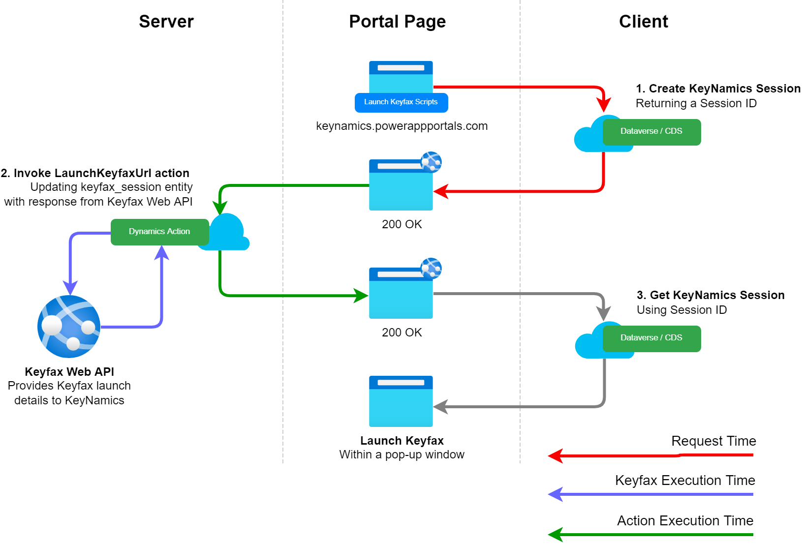 LaunchKeyfaxUrlaction completes and launch information has been successfully added to thekeyfax_sessionentity within Dynamics the clients browser then makes an additional GET request to/_api/keyfax_sessionsto obtain the Keyfax launch URL for the users KeyNamics session.