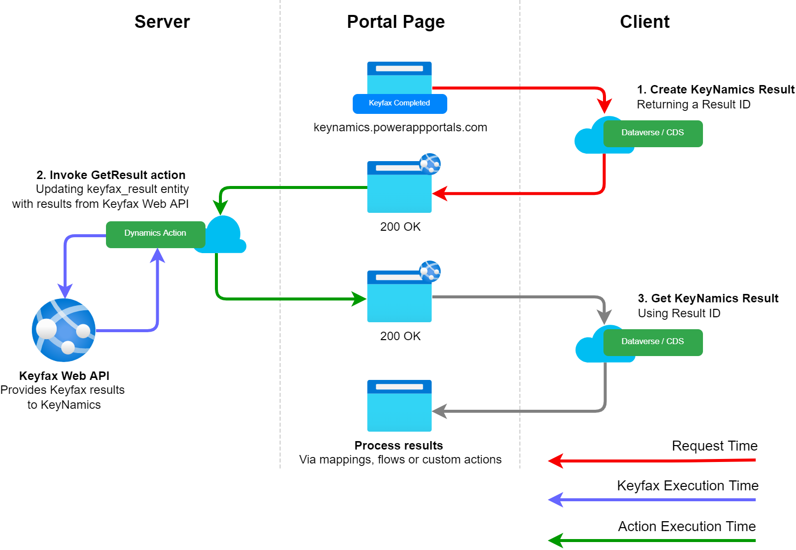Action Execution Time The number of milliseconds it took in total for the server side Dynamics action to execute. This includes the Keyfax Execution Time.